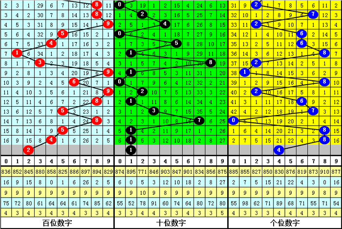 号码频次分析:最近10周星期三各号码组选出现频次分别为:号码2、5、7、8出现4次,号码4、9出现3次,号码0、1、3、6出现2次,号出现1次,本期注意最热四码:2578中包含胆码,预计奖号不会全部分布在最冷四码:0136中。